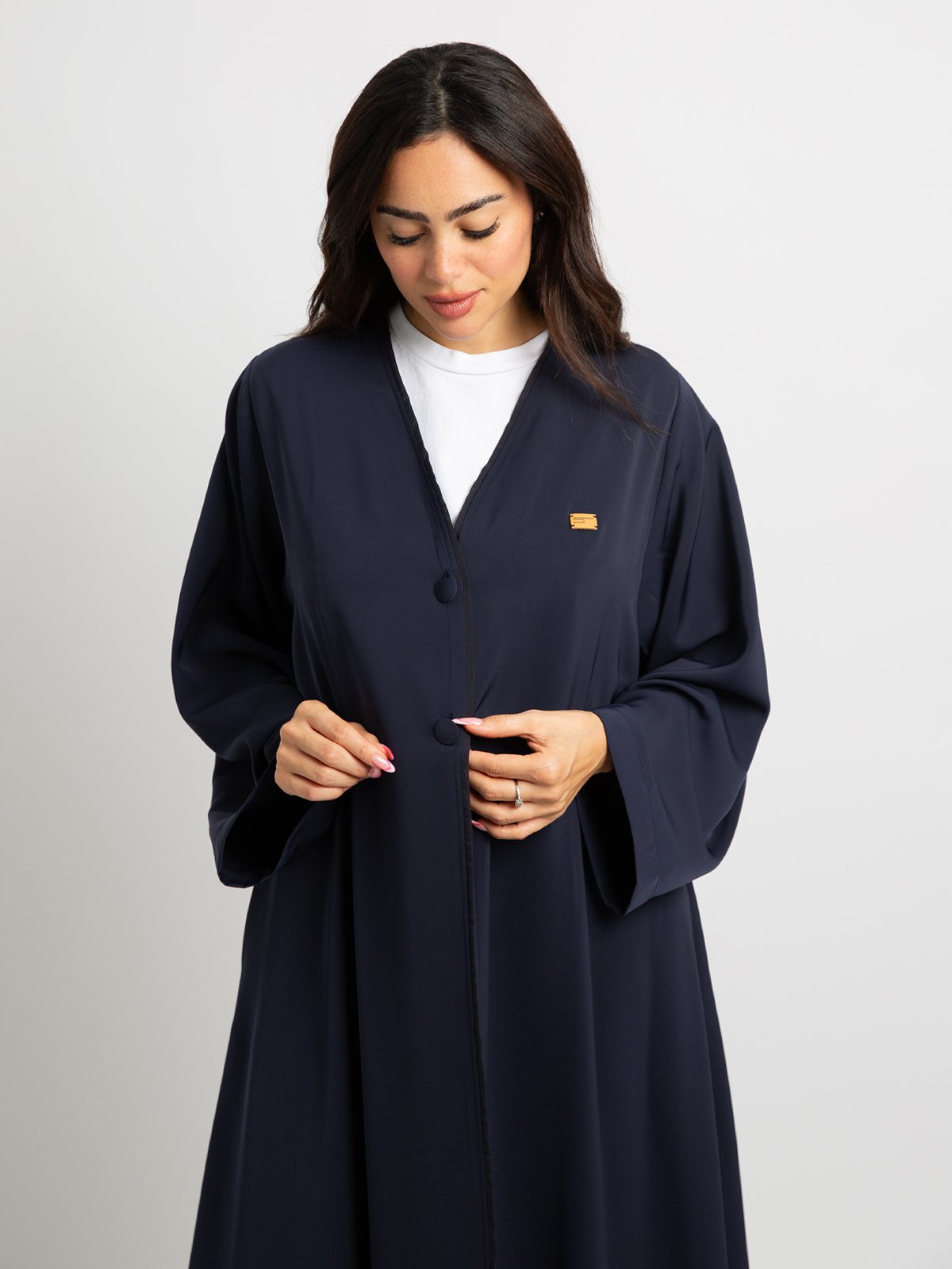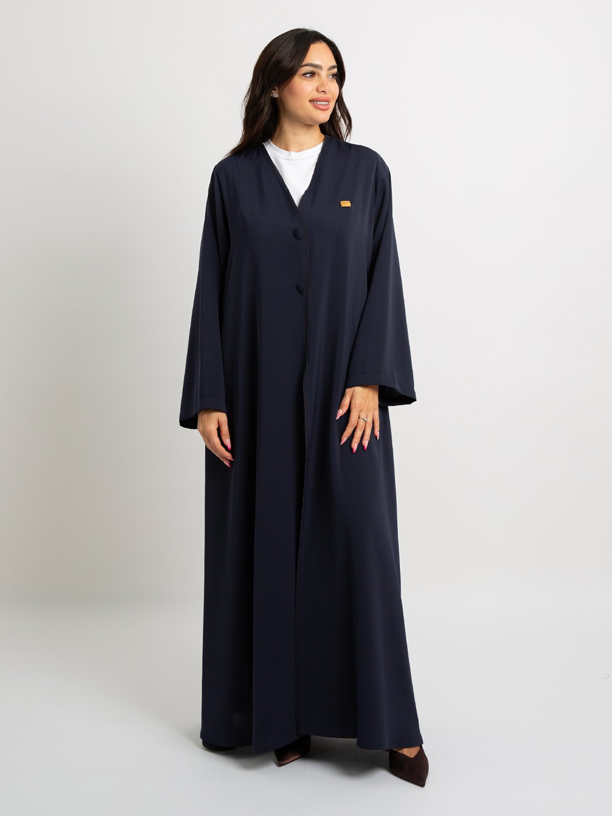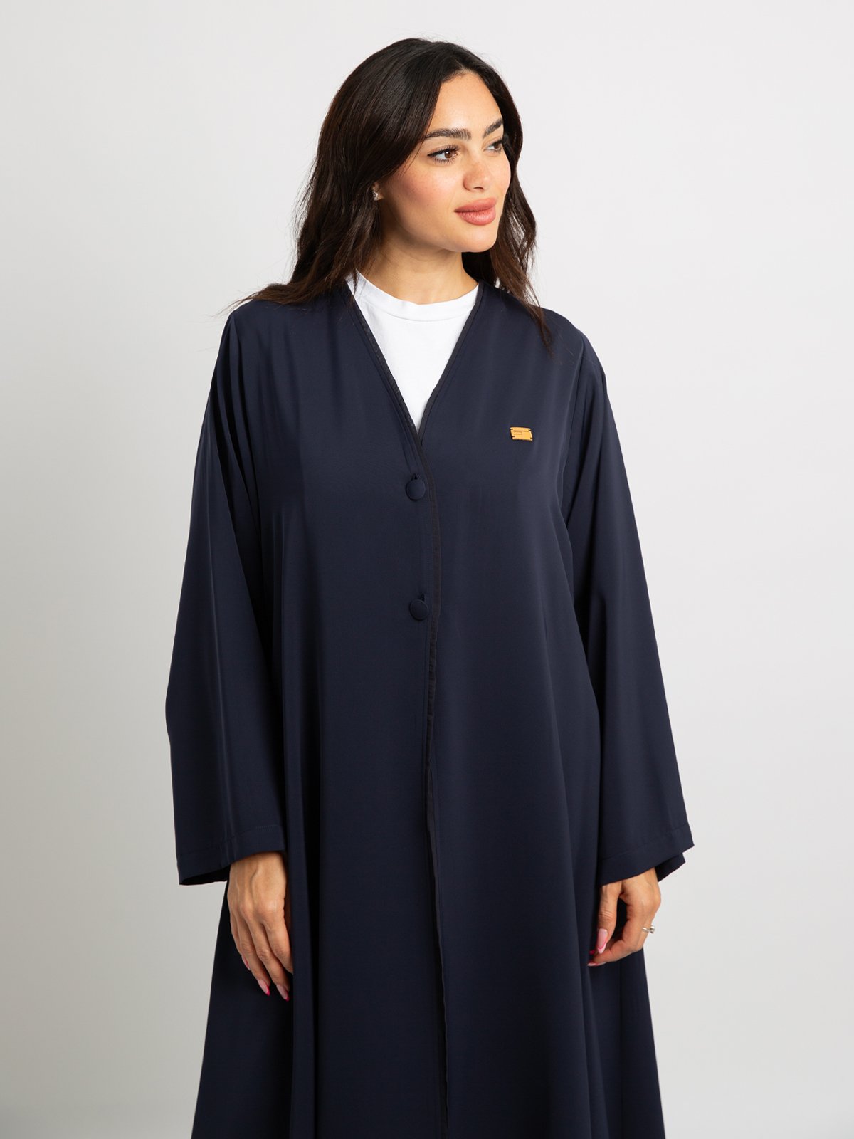 عباية رسمية مقفلة من Abaya House!عباية كريب نص كلوش رسمية مصنوعة من قماش كريب عالي الجودة، بجيوب جانبية وأزرار أمامية؛ تمنحك إطلالة راقية ومميزة!لون العباية:كحلي.تتميز هذه العباية بـ:قماش كريب عالي الجودة.أكمام عادية.زران أماميان.جيبان جانبيان.شريطة على خط الأمام بدرجة لون مختلفة.مصممة لتكون أقصر بـ ٢ إنش عن المعتاد، لتمنحك مظهر حيوي وجذاب.قصة A، يمكنك تنسيقها بسهولة.عباية مرتبة وأنيقة، ارتديها في اجتماعات العمل والمناسبات الرسمية.تأتي العباية مع حجاب / طرحه بلونين متناسقين.مقاس الطرحة:٢٠٠ × ٥٥