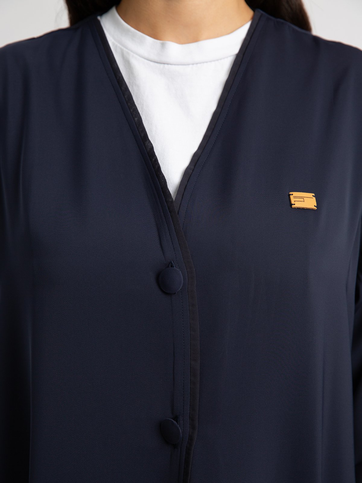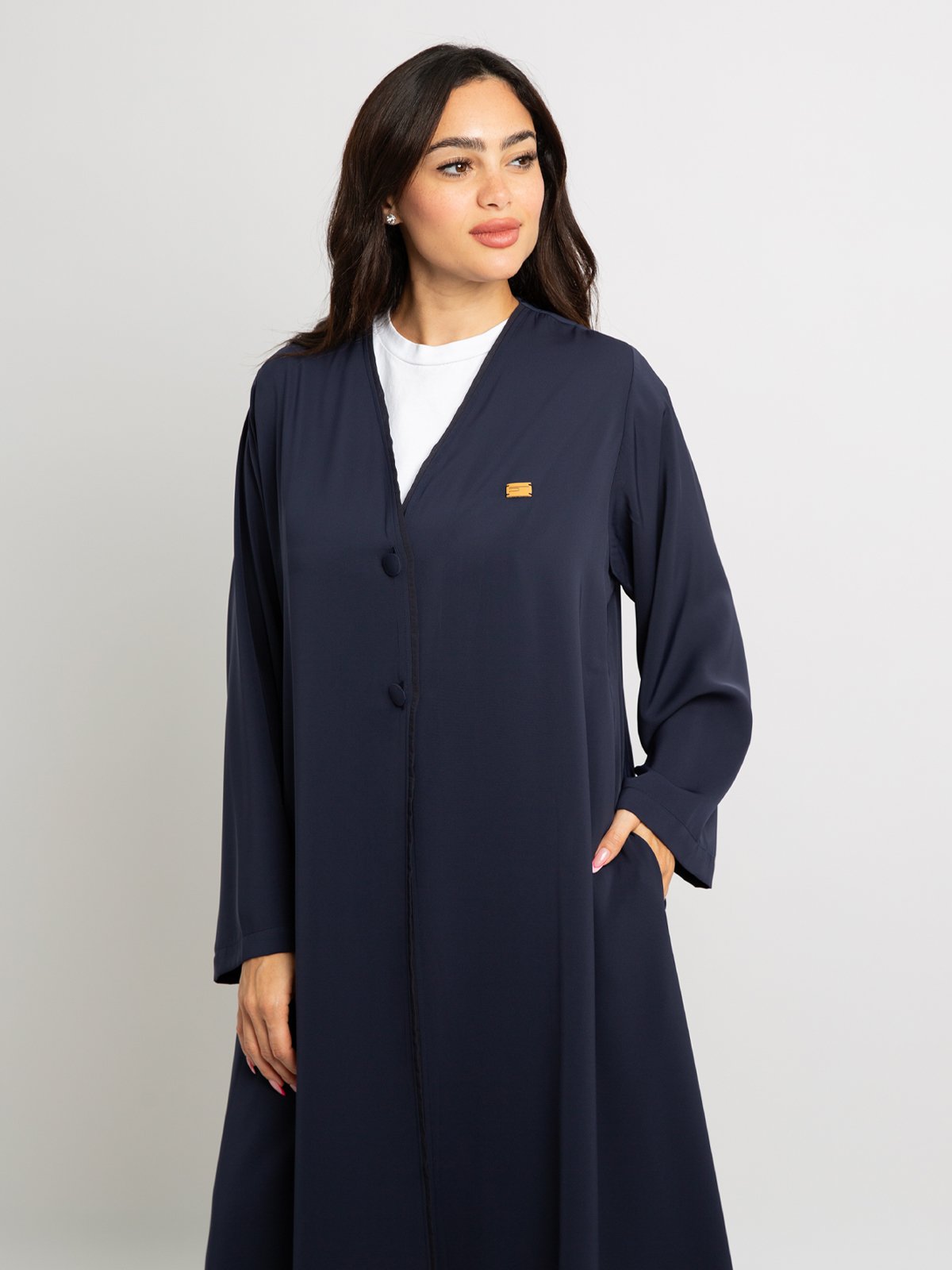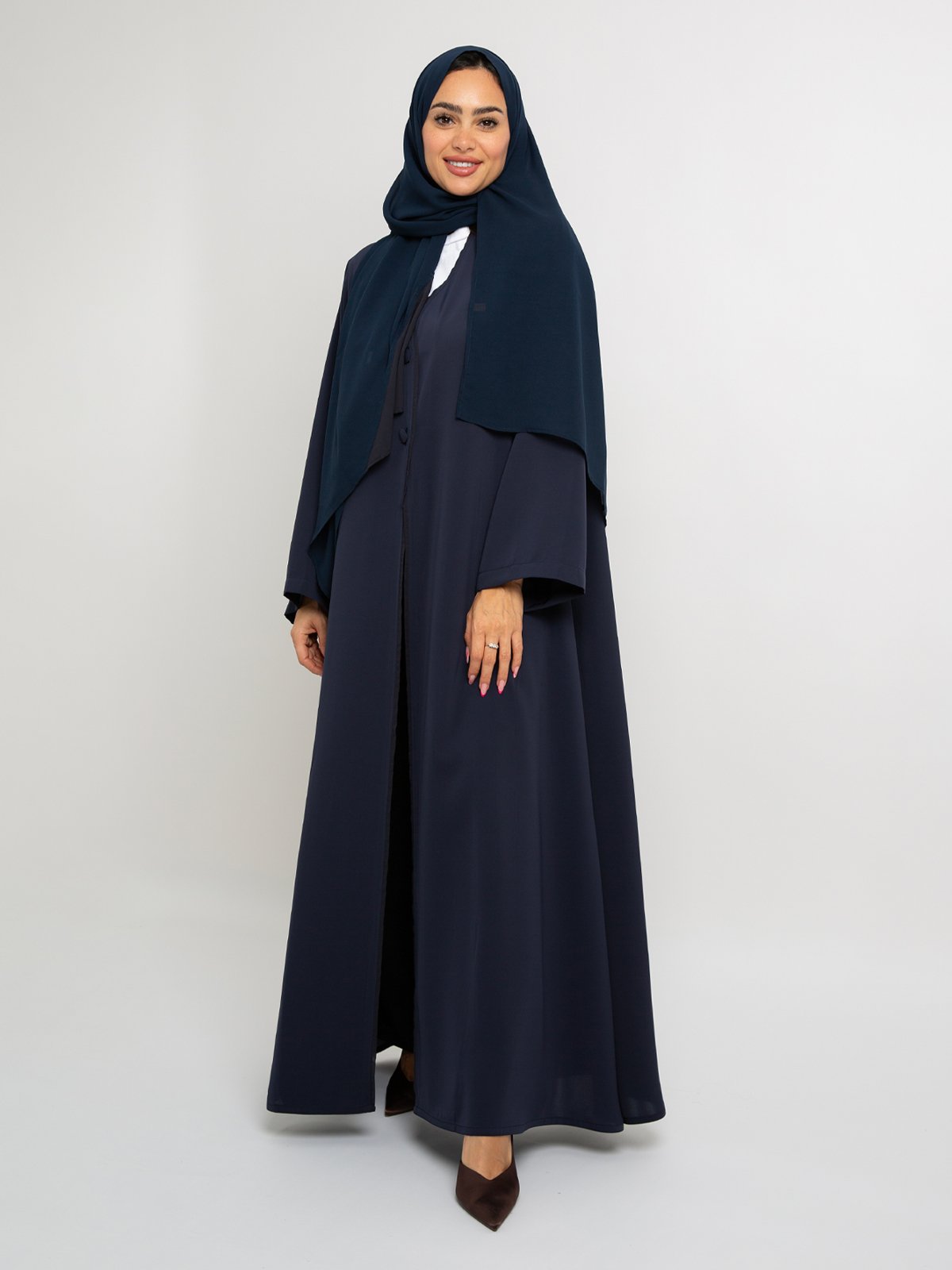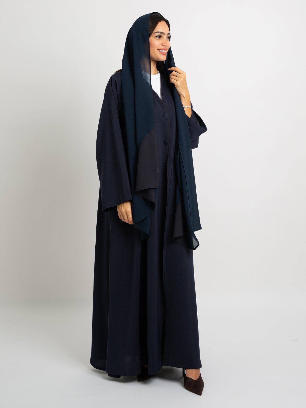 عباية رسمية مقفلة من Abaya House!عباية كريب نص كلوش رسمية مصنوعة من قماش كريب عالي الجودة، بجيوب جانبية وأزرار أمامية؛ تمنحك إطلالة راقية ومميزة!لون العباية:كحلي.تتميز هذه العباية بـ:قماش كريب عالي الجودة.أكمام عادية.زران أماميان.جيبان جانبيان.شريطة على خط الأمام بدرجة لون مختلفة.مصممة لتكون أقصر بـ ٢ إنش عن المعتاد، لتمنحك مظهر حيوي وجذاب.قصة A، يمكنك تنسيقها بسهولة.عباية مرتبة وأنيقة، ارتديها في اجتماعات العمل والمناسبات الرسمية.تأتي العباية مع حجاب / طرحه بلونين متناسقين.مقاس الطرحة:٢٠٠ × ٥٥