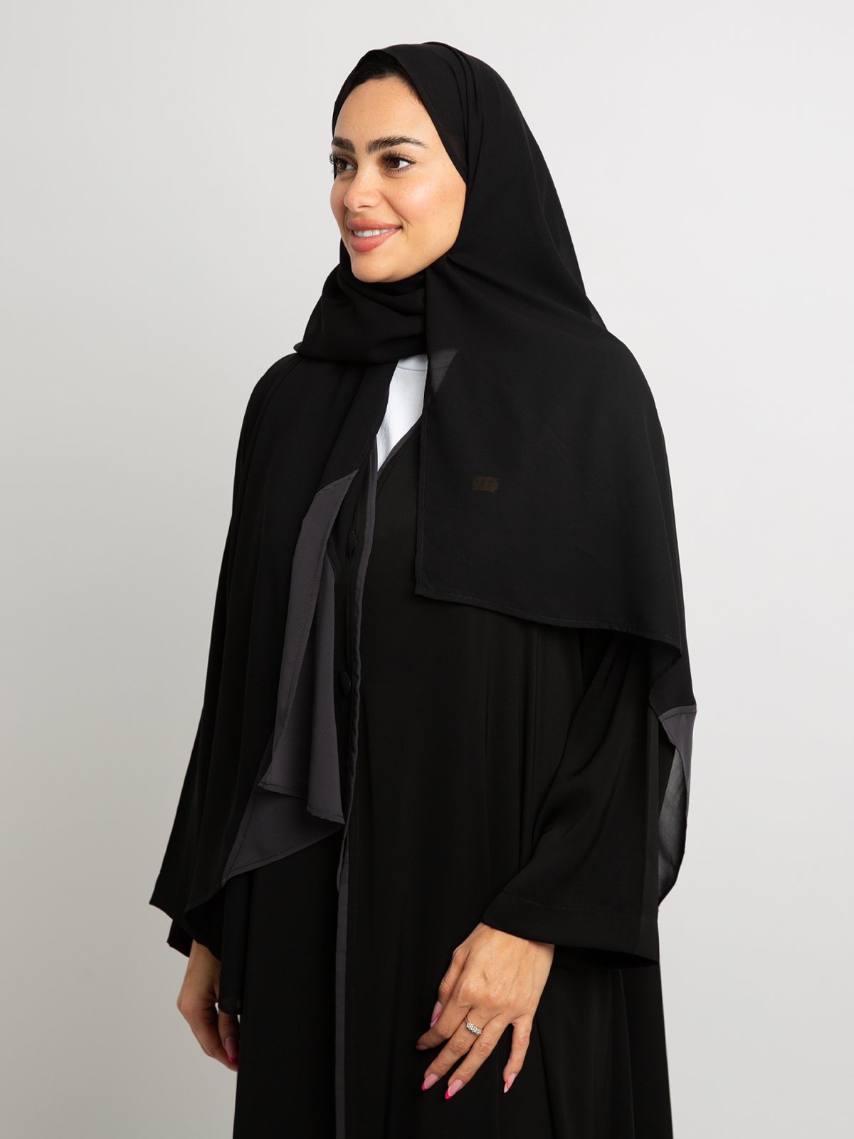 • عباية طويلة مقفلة من الأمام لتمنحك مظهر حيوي وجذاب.