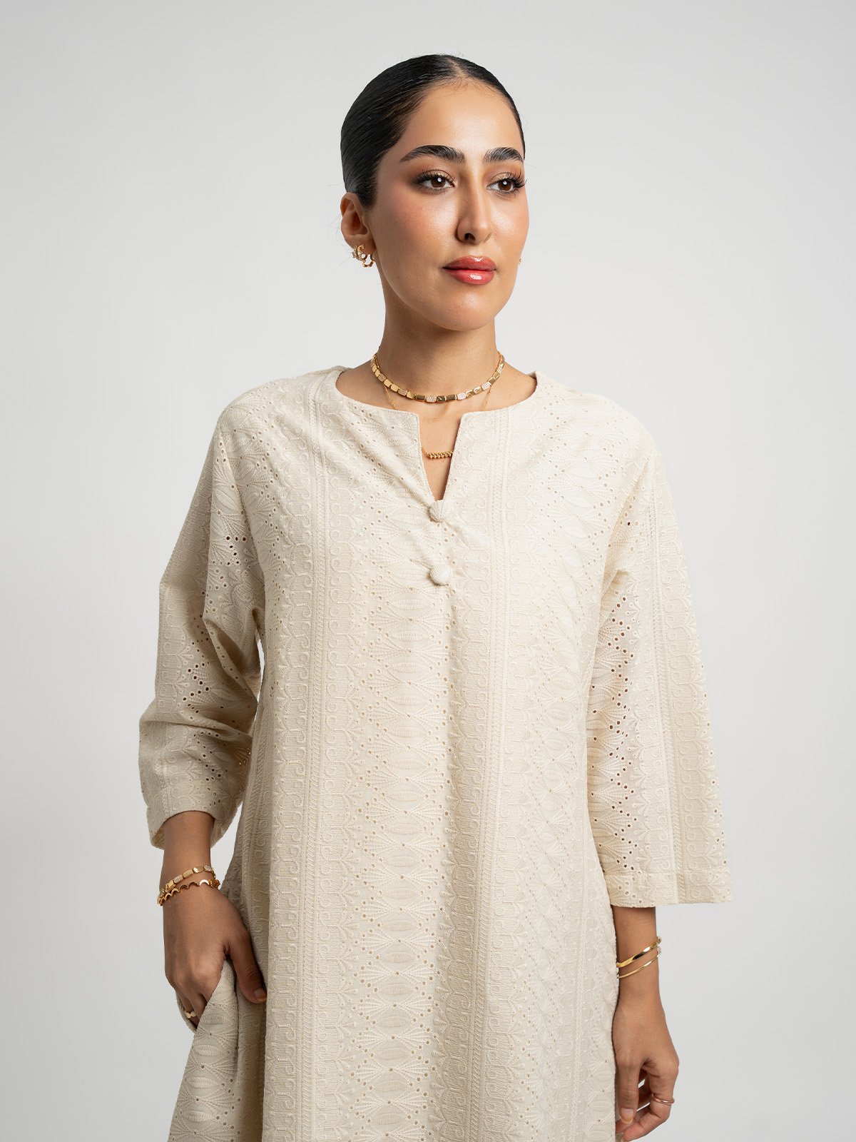 جلابية جديدة أنيقة، مصنوعة من قماش ركامة قطن ١٠٠٪؜ عالي الجودة وقصَّة A. بتصميم أنيق وتفاصيل مدروسة، تناسب أجواء رمضان الهادئة، من جلسات الفطور العائلية إلى سهرات السحور، وحتى الاستخدام اليومي بكل بساطة.