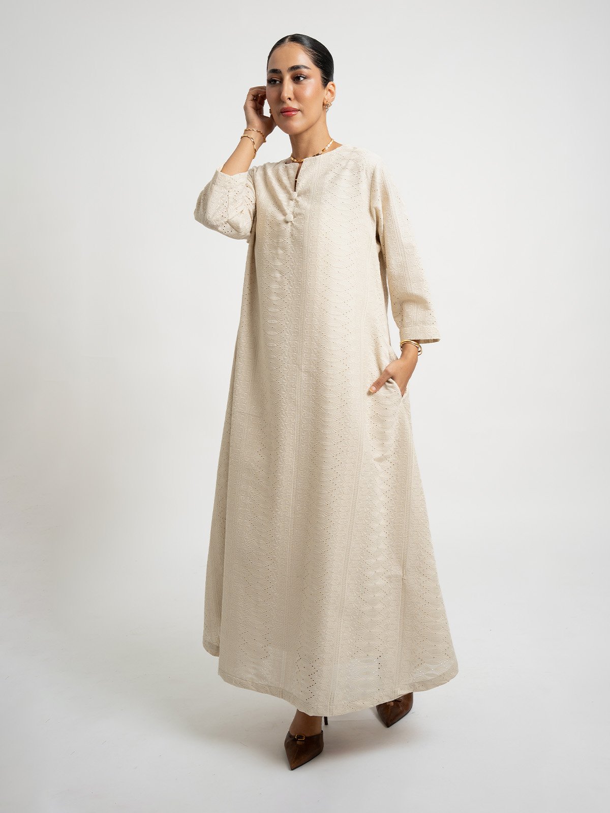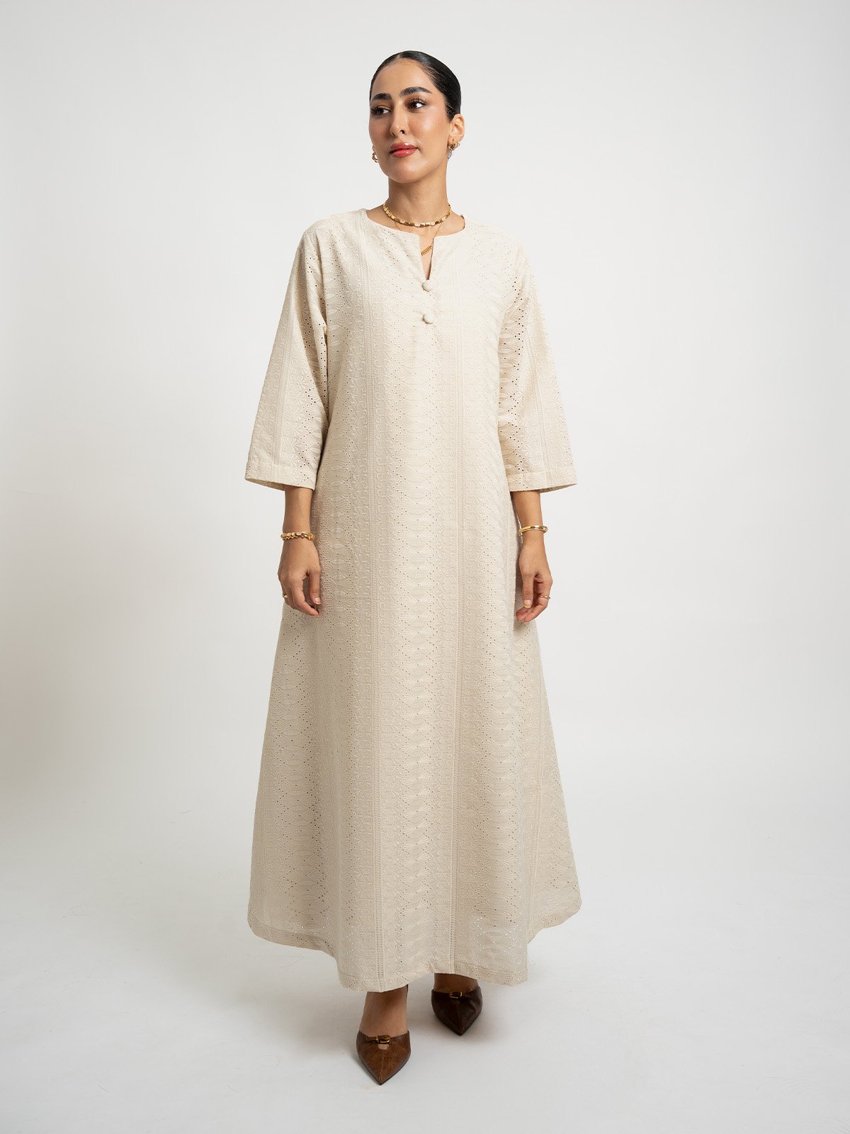 جلابية نص كلوش ركامة ١٠٠٪؜ قطن