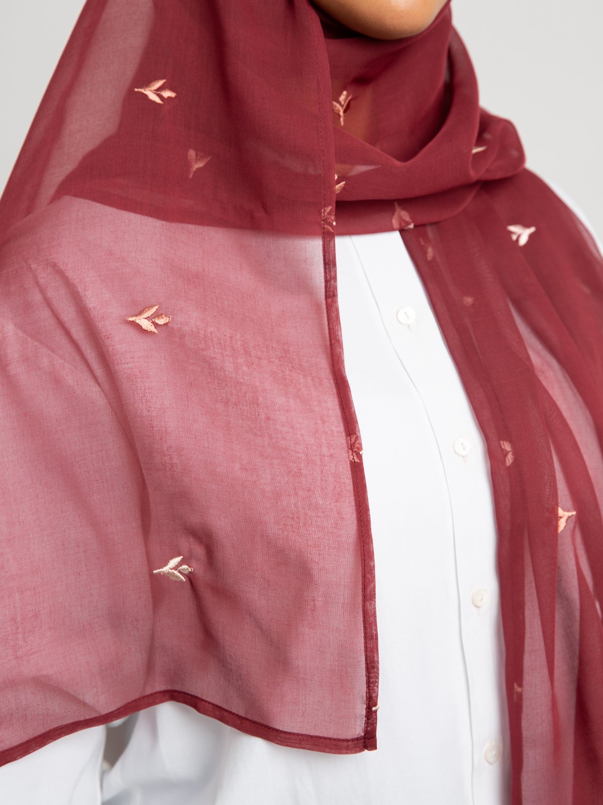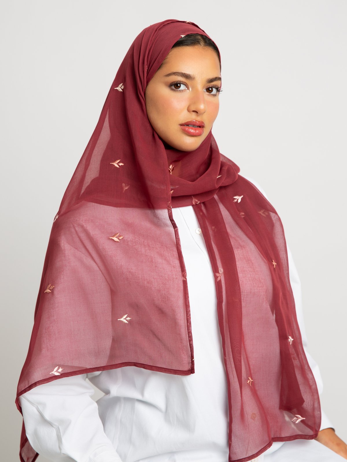 طرحه بوال بتطريز ورود من Abaya House – ثبات وأناقة في طرحه واحدة!
