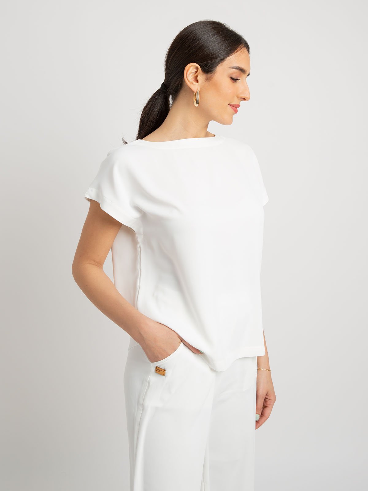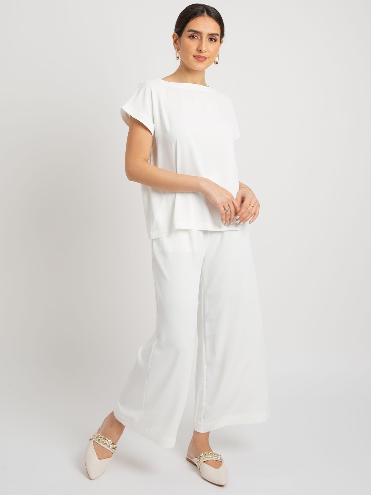 طقم خفيف من قطعتين – أساسيات Abaya House!طقم يومي أساسي تحت العباية في خزانتك العملية من Abaya House.طقم متناسق عملي مكوَّن من قطعتين؛ بلوزة بأكمام قصيرة وبنطلون بقصة عادية وخصر مطاطي وجيوب، مصمم ليمنحك الراحة اللازمة لقضاء الأنشطة اليومية المختلفة بينما تتمتعين بإطلالة أنيقة وعصرية، مصنوع من قماش كريب خفيف عالي الجودة، يحقق لك الجانب العملي ويمنحك الراحة والأريحية في كل حركة وأي مكان. اقتنيه الآن!لون الطقم:أبيض.يتميز هذا الطقم بـ:قماش كريب خفيف عالي الجودة.بلوزة بأكمام قصيرة.قطعة من تصاميم (وَن