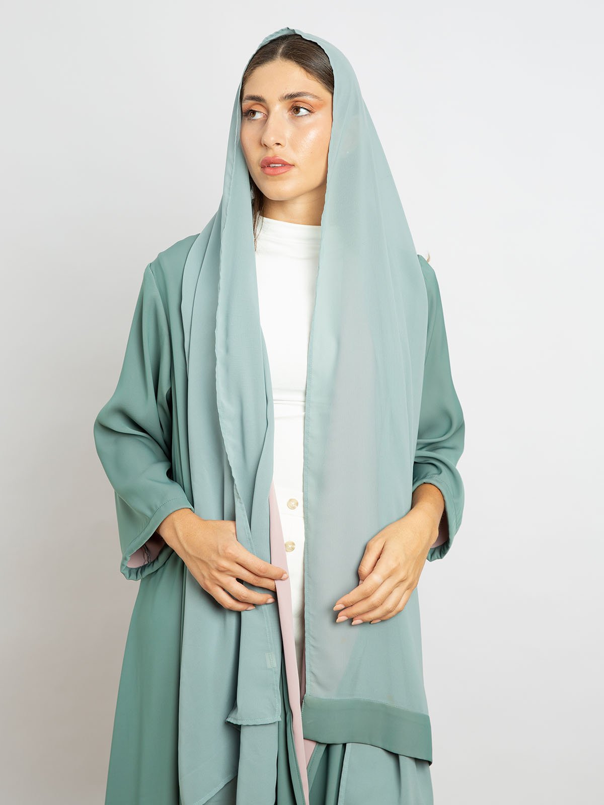 عباية آوتليت بدون طرحةعباية أوربان هي خيارك الأفضل للعبايات المحتشمة الخفيفة!تأتي العباية بلون فستقي مع وردي لإطلالة منعشة.تتميز هذه العباية بـ:قماش كريب مزدوج اللون.مصممة ليصل طولها إلى نصف الساق مع كم حيران.عباية مفتوحة من الأمام لتعطيك مظهر عصري.قصة عادية يمكنك تنسيقها بسهولة.يمكنك تنسيق العباية بطرق مختلفة وارتدائها كقطعة رسمية أو غير رسمية.