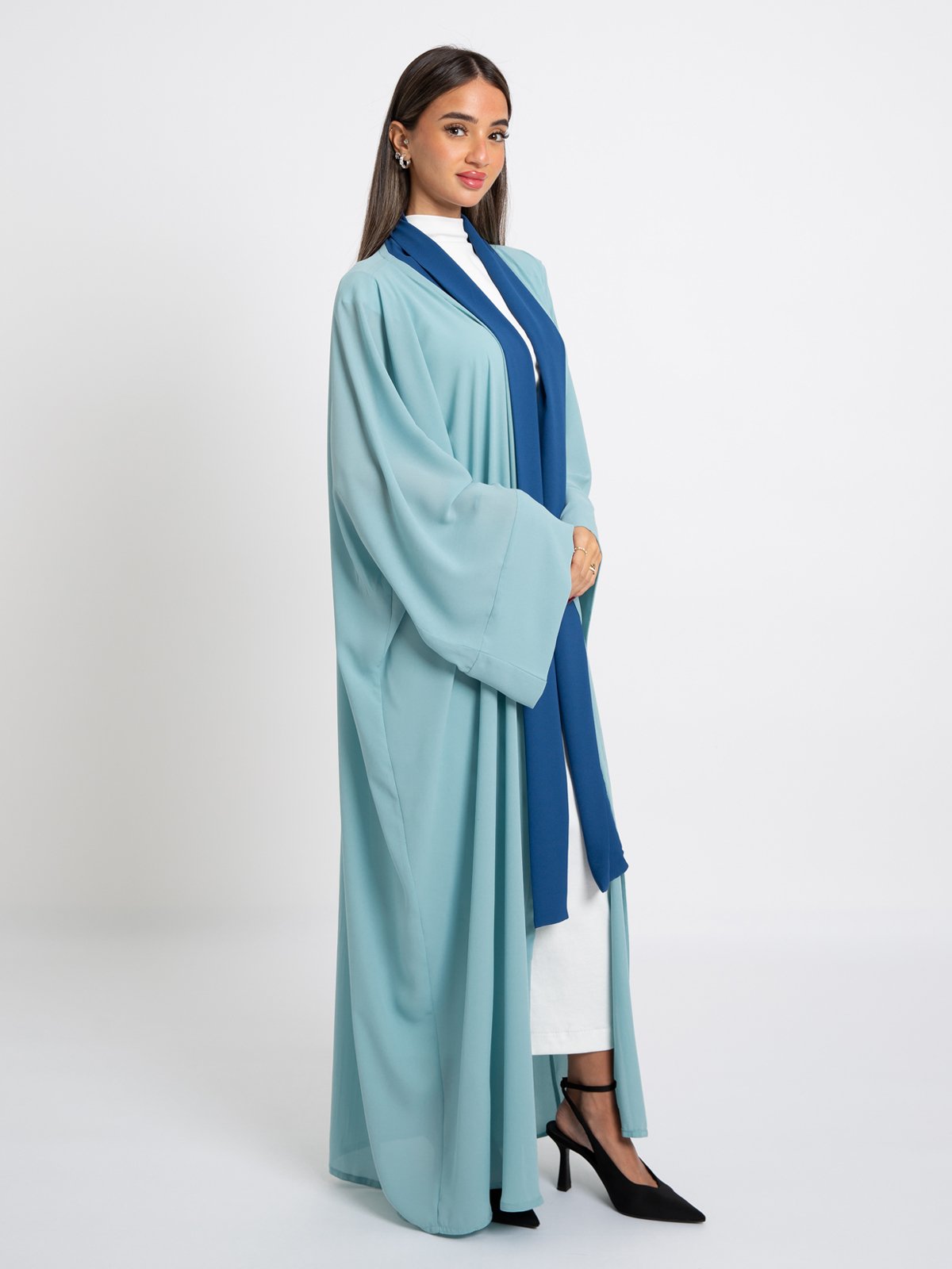 عباية فريدة تبرز تميُّزك!فلوستايل – العباية الأفضل مبيعًا من Abaya House!تبحثين عن إطلالة تجمع بين الأناقة والراحة؟ لا تبحثي بعيدًا!عباية فلوستايل لونين خيارك المثالي لإطلالة بسيطة وأنيقة!عباية سادة مصنوعة من قماش جورجيت خفيف وناعم؛ تمنحك شعورًا بالراحة كما تحتفظ بألوانها الزاهية بشكل مذهل؛ تبرز جمالية تصميمها في قصّتها الواسعة التي توفر لك حرية الحركة، بينما تضيف الكولة بلون مختلف لمسة جريئة تعكس ذوقك الرفيع.عباية مميزة تمنحك إطلالة رائعة في كل مكان.لون العباية:أزرق مائي (أكوا) مع كولة أزرق.تتم