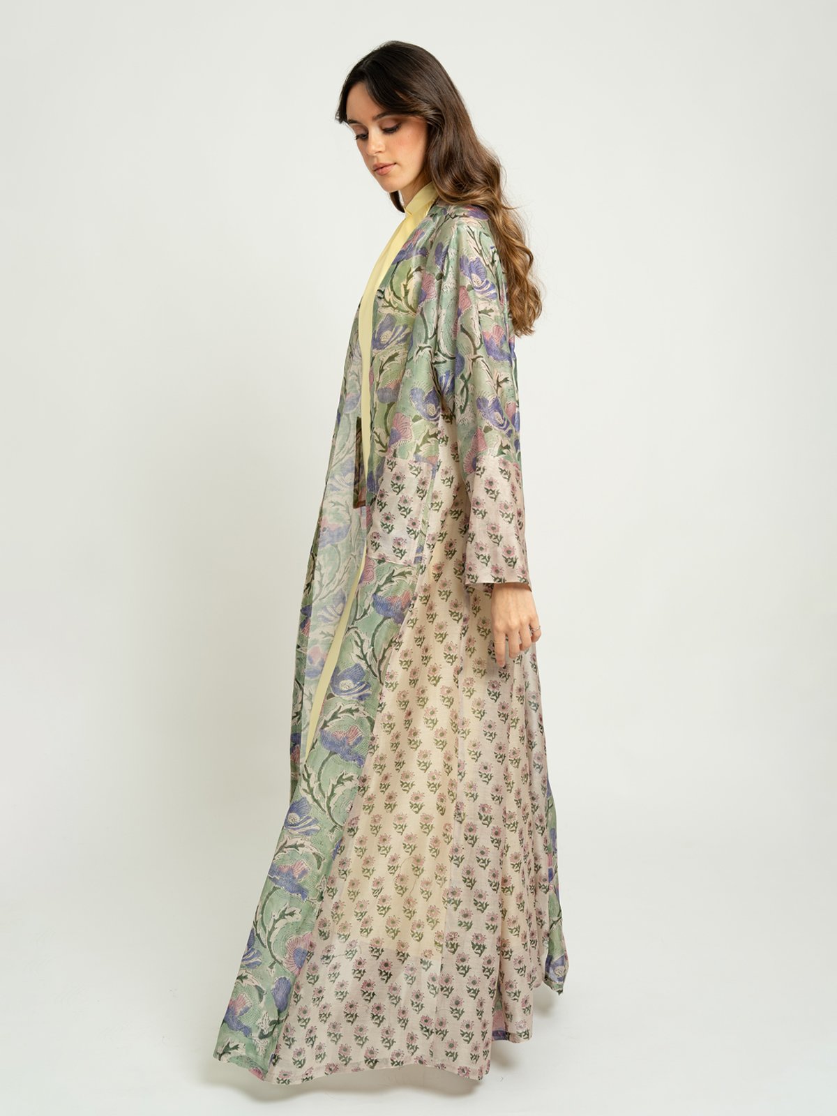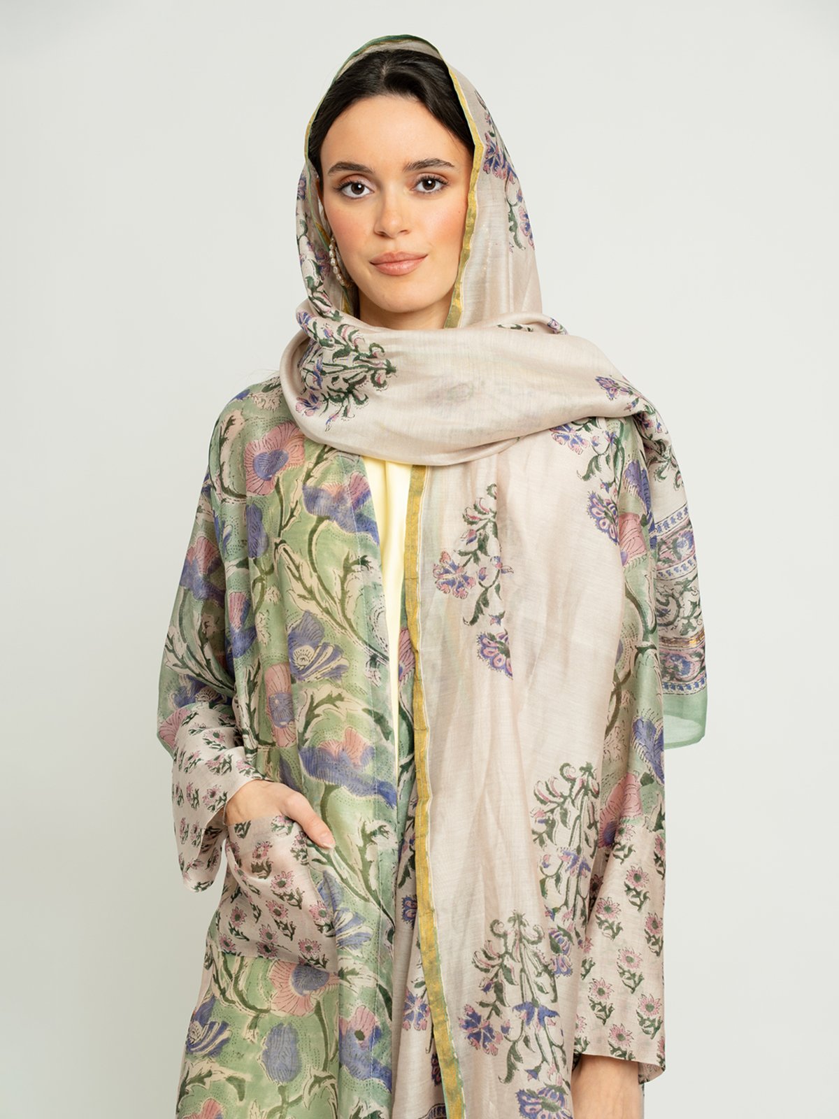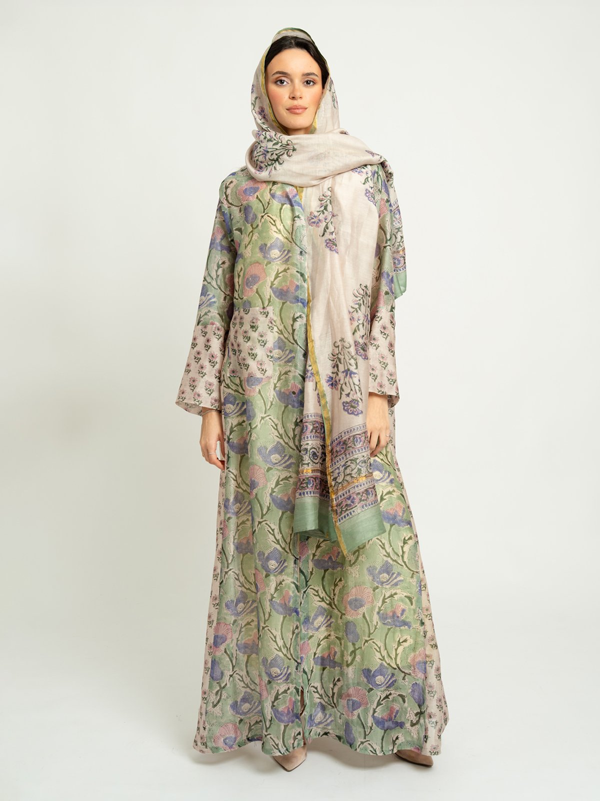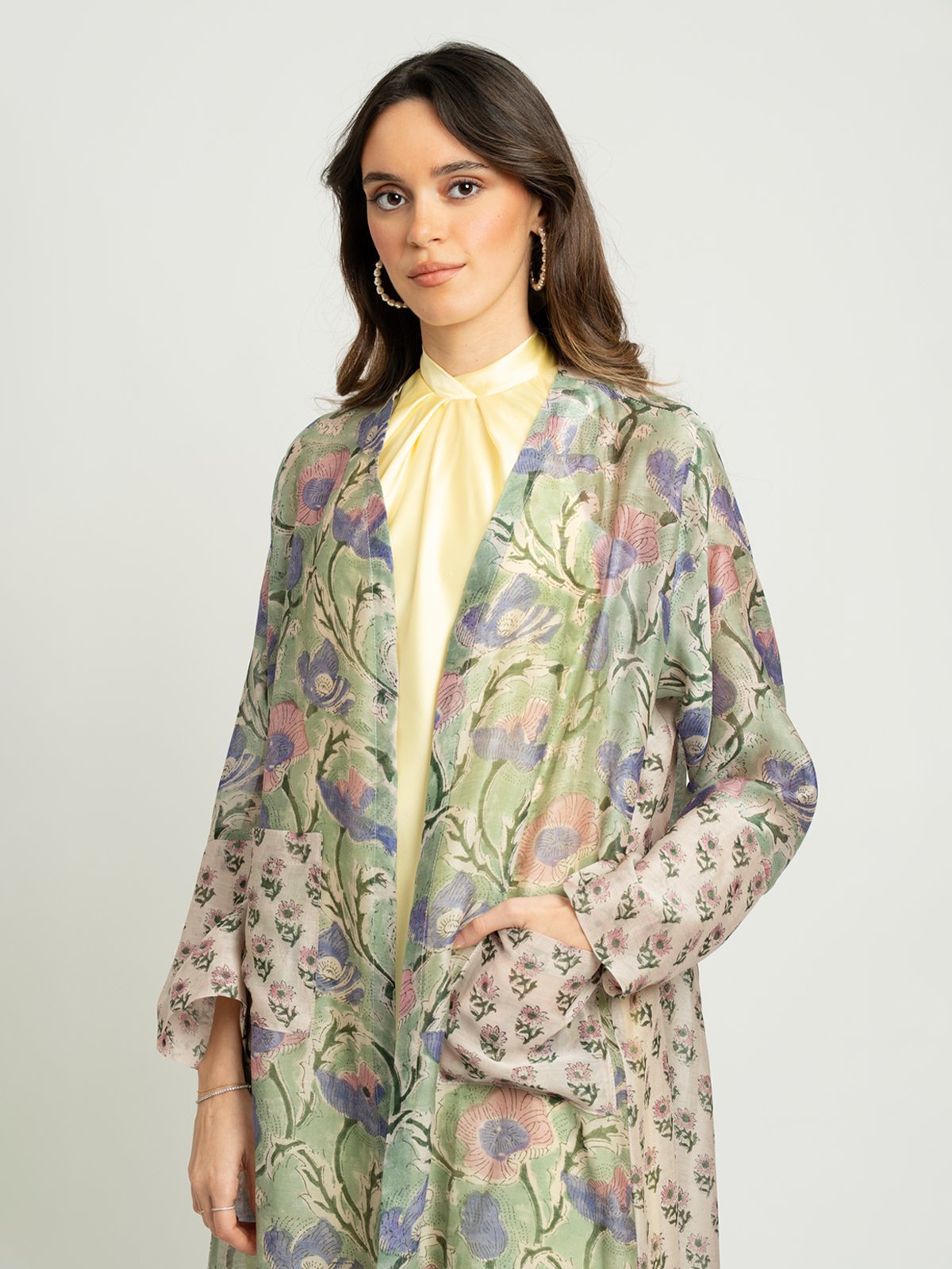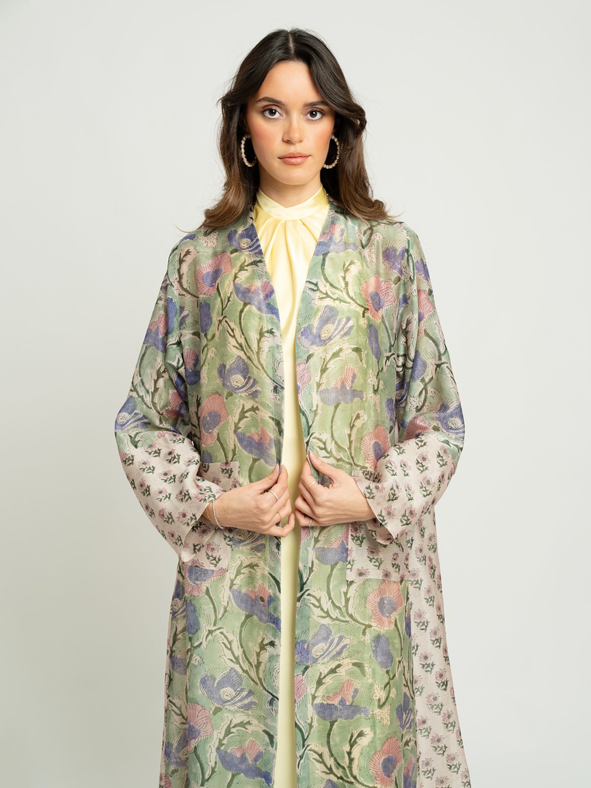 كولكشن رمضان ٢٠٢٦ من Abaya Houseإطلالات تليق بالشهر الكريم!عباية نص كلوش ١٠٠٪ حرير واقف بطبعةعباية جديدة بطبعة، مصنوعة من قماش حرير واقف ١٠٠٪ عالي الجودة وقصَّة A، مثالية لـ الزيارات الرمضانية، التجمعات العائلية، والاستخدام اليومي.تحت شعار من الفطور حتى السحور، يأتي الكولكشن بتنوّع في القصَّات والألوان والخامات، اختاري ما يناسبكِ واستعدي لأناقة رمضان!لون العباية:عباية اخضر بطبعات.تتميز هذه العباية بـ:قماش حرير واقف ١٠٠٪.طبعات على العباية بالكامل.أكمام ضيقة.جيوب أمامية.عباية طويلة مفتوحة من الأم