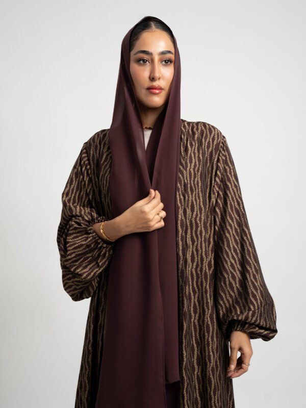 عباية جديدة بطبعة، مصنوعة من قماش حرير واقف ١٠٠٪ عالي الجودة وقصَّة A، مثالية لـ الزيارات الرمضانية، التجمعات العائلية، والاستخدام اليومي.
