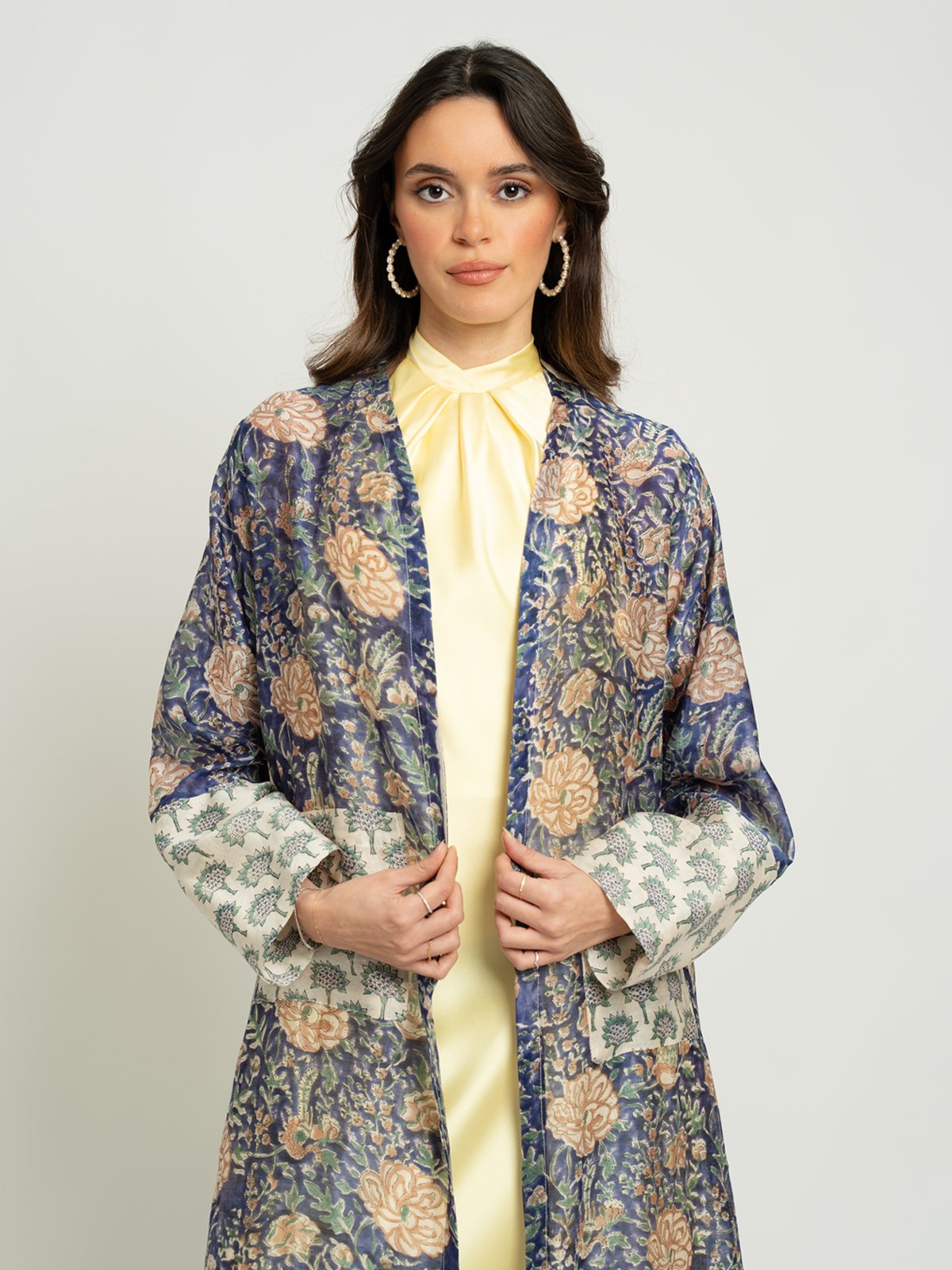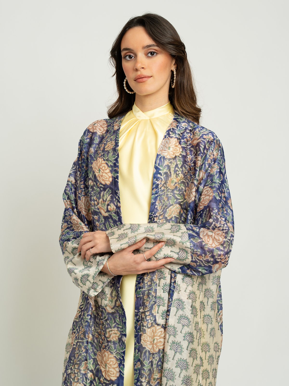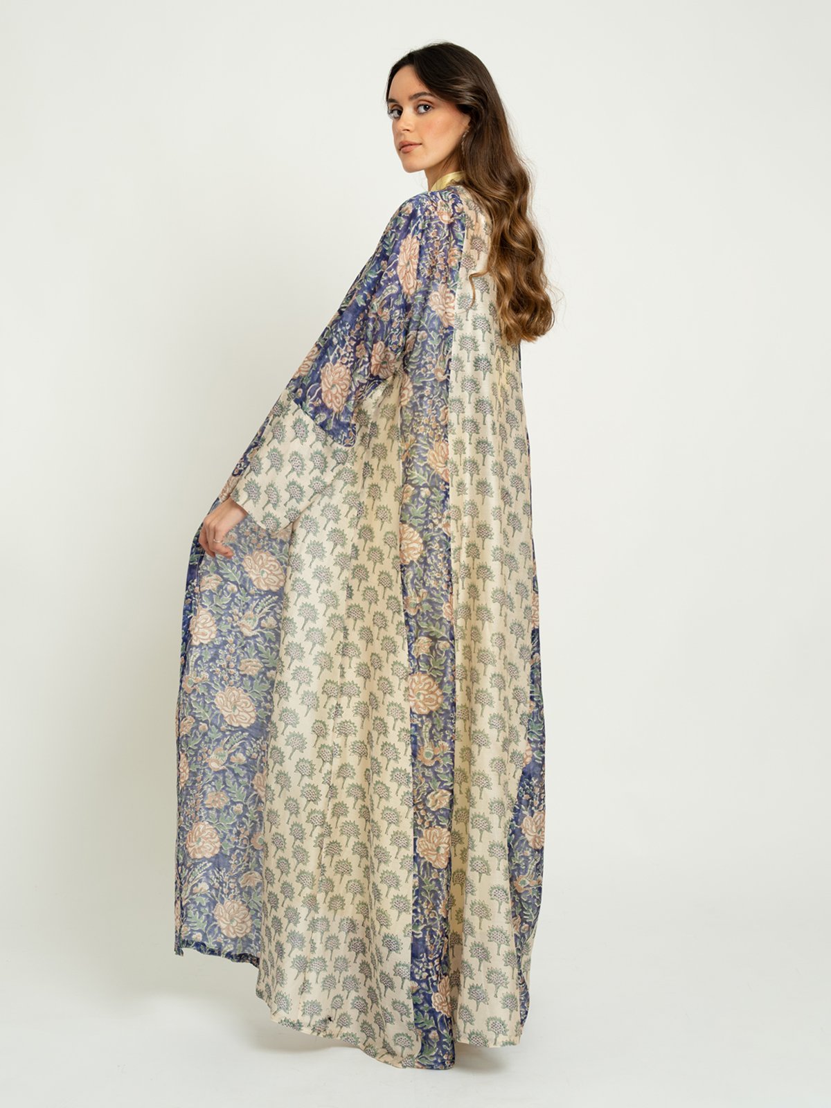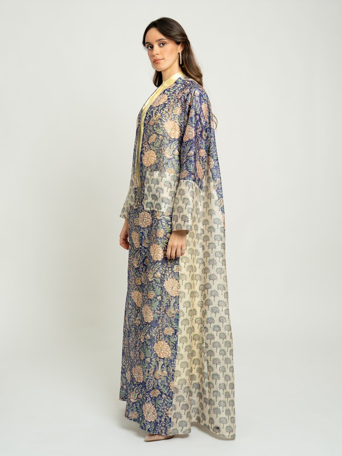 كولكشن رمضان ٢٠٢٦ من Abaya Houseإطلالات تليق بالشهر الكريم!عباية نص كلوش ١٠٠٪ حرير واقف بطبعةعباية جديدة بطبعة، مصنوعة من قماش حرير واقف ١٠٠٪ عالي الجودة وقصَّة A، مثالية لـ الزيارات الرمضانية، التجمعات العائلية، والاستخدام اليومي.تحت شعار من الفطور حتى السحور، يأتي الكولكشن بتنوّع في القصَّات والألوان والخامات، اختاري ما يناسبكِ واستعدي لأناقة رمضان!لون العباية:عباية كحلي بطبعات.تتميز هذه العباية بـ:قماش حرير واقف ١٠٠٪.طبعات على العباية بالكامل.أكمام ضيقة.جيوب أمامية.عباية طويلة مفتوحة من الأم