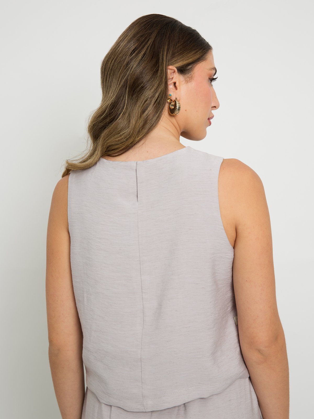 • بلوزة بدون أكمام ورقبة دائرية مرتفعة.