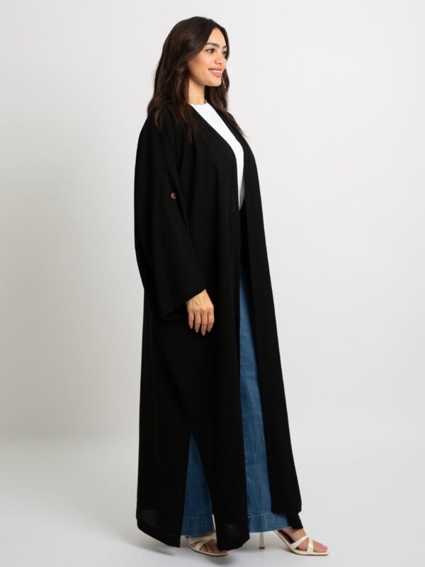 عباية بوهيمي بقصة عادية زهرة ركامة أسود
